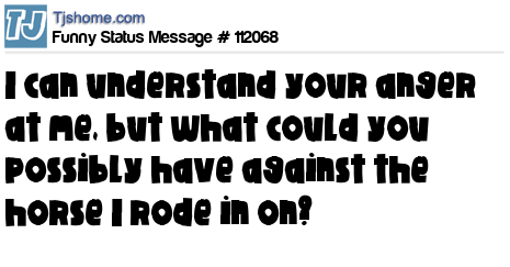 - # 198724 OK, I can understand why you're mad at me, but the horse I rode in on had nothing to do with it.