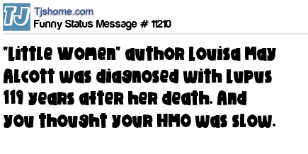X "Little Women" author Louisa May Alcott was diagnosed with Lupus 119 years after her death. And you thought your HMO was slow.