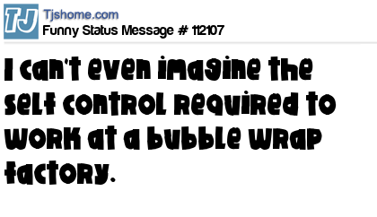 - # 161734 The hardest job in the world must be working in a bubble wrap factory. Can you imagine the self control that is required to work there, "must not pop bubbles"