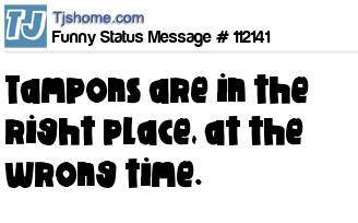 - # 65259 If ur the type of guy who is embarrassed to pick up tampons for ur girlfriend, well live through just one "I'm late" false alarm buddy & the next time you will be skipping down the grocery aisle waving them over your head and shouting, "I've got tampons!"
