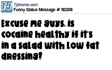 X says Excuse me guys, is cocaine healthy if it's in a salad with low fat dressing?