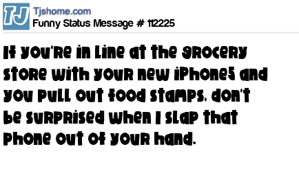 X If you're in line at the grocery store with your new iPhone5 and you pull out food stamps, don't be surprised when I slap that phone out of your hand.