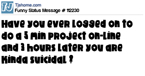 X is have you ever logged on to do a 5 min project on-line and 3 hours later you are kinda suicidal ?