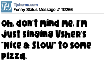 X says Oh, don't mind me, I'm just singing Usher's "Nice & Slow" to some pizza.