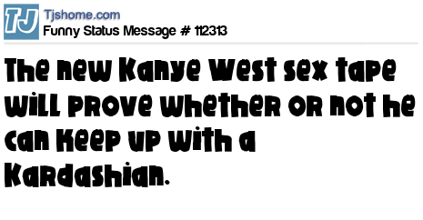 - # 112481 So the Kanye West sex tape has been leaked... It's just footage of Kanye wanking while looking at his own reflection in a mirror.