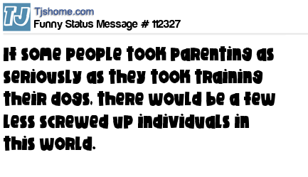 X says If some people took parenting as seriously as they took training their dogs, there would be a few less screwed up individuals in this world.