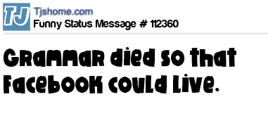 - # 43952 Thinks people get mad when you don't use korrect grammar and spelin, because they can't just copy/paste it to thier Facebook. Sorry you had to add a comma, it must be such an inconvenience.