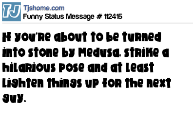 X If you're about to be turned into stone by Medusa, strike a hilarious pose and at least lighten things up for the next guy.