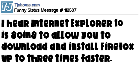 X I hear Internet Explorer 10 is going to allow you to download and install Firefox up to three times faster.