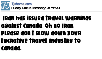 X is Iran has issued travel warnings against Canada. Oh no Iran, please don't slow down your lucrative travel industry to Canada.