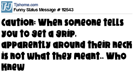 X Caution: When someone tells you to get a grip, apparently around their neck is not what they meant.. Who knew