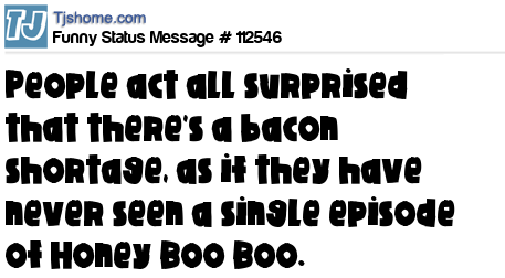 X People act all surprised that there's a bacon shortage, as if they have never seen a single episode of Honey Boo Boo.