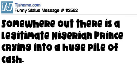 X says Somewhere out there is a legitimate Nigerian Prince crying into a huge pile of cash.