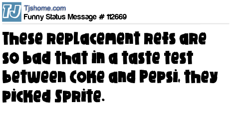 X is These replacement refs are so bad that in a taste test between Coke and Pepsi, they picked Sprite.