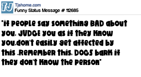 X "if people say something BAD about you, JUDGE you as if they know you,don't easily get affected by this .Remember this, DOGS bark if they don't know the person"