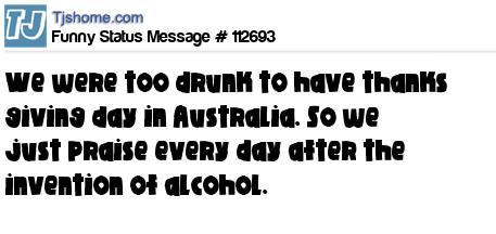 X says We were too drunk to have thanks giving day in Australia. So we just praise every day after the invention of alcohol.