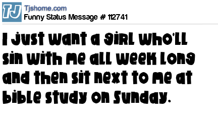 X says I just want a girl who'll sin with me all week long and then sit next to me at bible study on Sunday.