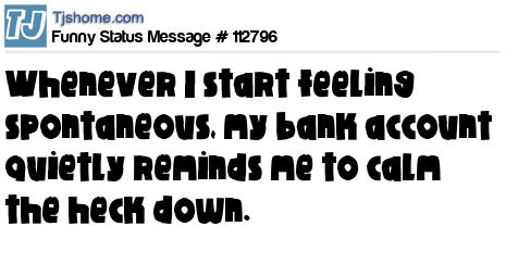 - # 121997 whenever I start to feel adventurous and spontaneous, my bank account tells me to calm the hell down