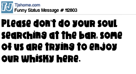 X says Please don't do your soul searching at the bar, some of us are trying to enjoy our whisky here.