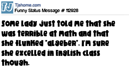 X Some lady just told me that she was terrible at math and that she flunked "algeber". I'm sure she excelled in English class though.