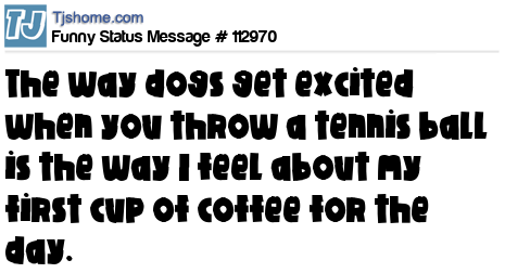 X says The way dogs get excited when you throw a tennis ball is the way I feel about my first cup of coffee for the day.