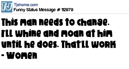 X says This man needs to change. I'll whine and moan at him until he does. That'll work - Women