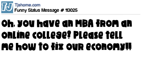 X says Oh, you have an MBA from an online college? Please tell me how to fix our economy!!