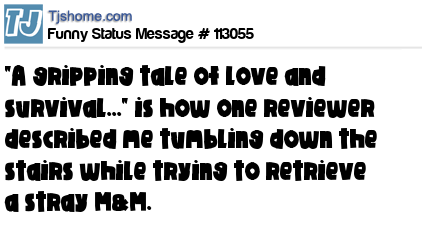 X is "A gripping tale of love and survival..." is how one reviewer described me tumbling down the stairs while trying to retrieve a stray M&M.