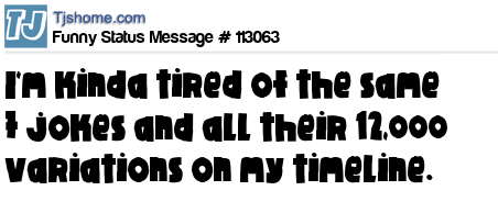 X says I'm kinda tired of the same 7 jokes and all their 12,000 variations on my timeline.