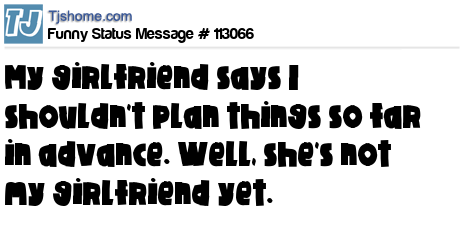 X says My girlfriend says I shouldn't plan things so far in advance. Well, she's not my girlfriend yet.