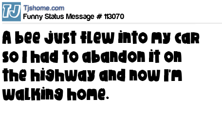 X says A bee just flew into my car so I had to abandon it on the highway and now I'm walking home.