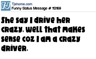 X says She say I drive her crazy, well that makes sense coz I am a crazy driver.