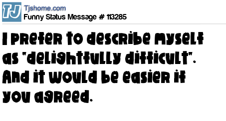 X I prefer to describe myself as "delightfully difficult". And it would be easier if you agreed.