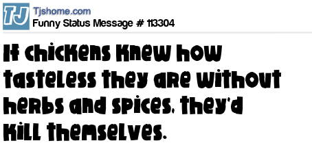 X says If chickens knew how tasteless they are without herbs and spices, they'd kill themselves.