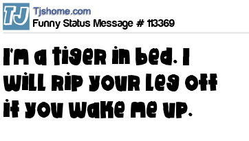 X says I'm a tiger in bed. I will rip your leg off if you wake me up.