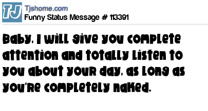 X says Baby, I will give you complete attention and totally listen to you about your day, as long as you're completely naked.