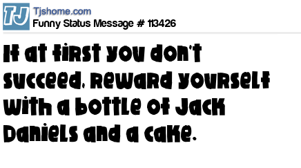 X says If at first you don't succeed, reward yourself with a bottle of Jack Daniels and a cake.