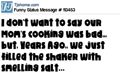 X I don't want to say our Mom's cooking was bad,,, but, Years Ago,, we just filled the shaker with smelling salt...