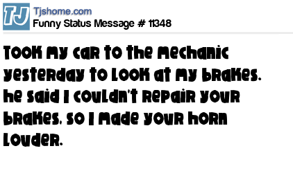 - # 18684 They couldn't repair my brakes, so they made my horn louder.