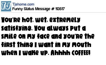 X You're hot, wet, extremely satisfying. You always put a smile on my face and you're the first thing I want in my mouth when I wake up. Ahhhh COFFEE!