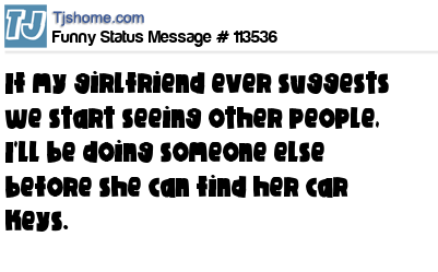 X says If my girlfriend ever suggests we start seeing other people, I'll be doing someone else before she can find her car keys.