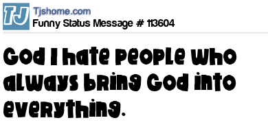 X says God I hate people who always bring God into everything.