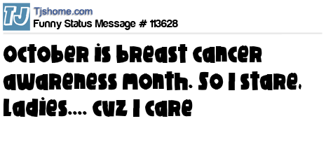 X October is breast cancer awareness month. So I stare, ladies.... cuz I care