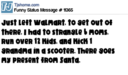 X is Just left Walmart, to get out of there, I had to strangle 6 moms, run over 12 kids, and kick 1 grandma in a scooter. There goes my present from Santa.