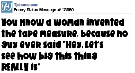 X You know a woman invented the tape measure, because no guy ever said "Hey, let's see how big this thing REALLY is"