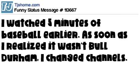 X says I watched 5 minutes of baseball earlier. As soon as I realized it wasn't Bull Durham, I changed channels.