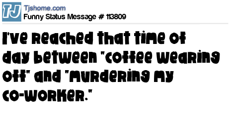 X I've reached that time of day between "coffee wearing off" and "murdering my co-worker."