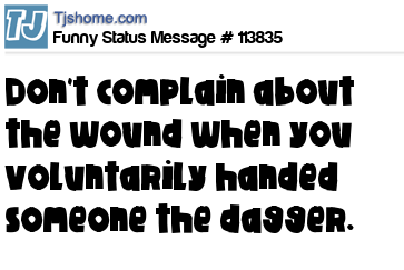 X says Don't complain about the wound when you voluntarily handed someone the dagger.