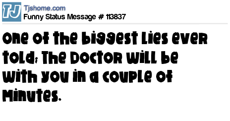 - # 95137 One of the biggest lies ever: The doctor will be with you in a couple of minutes.