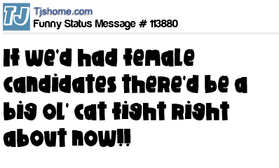X says if we'd had female candidates there'd be a big ol' cat fight right about now!!